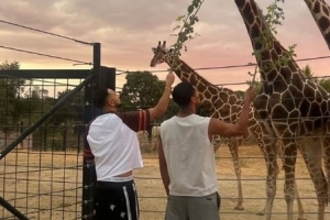 体育资讯10月13日讯 由于肩伤未愈,贝林厄姆没有入选本次国际比赛日英格兰队大名单。在马德里,他得以获得难得的闲暇时光。在社交媒体上,他晒出了自己在动物园内和长颈鹿互动的照片。
