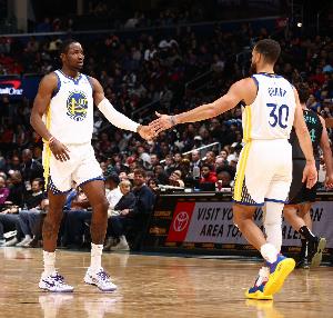 勇士首发:库里、波杰姆斯基、巴特勒、库明加、追梦格林。
